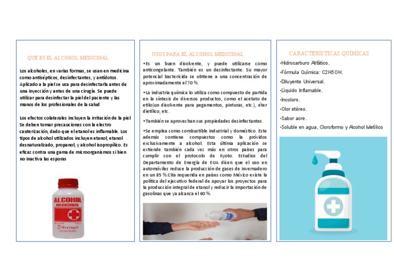 Es un preservativo bacteriostático en fármacos. A continuación puedes ver un extracto en el que se muestra información sobre alcohol medicinal. Designaban así a la esencia que podían obtener de la destilación del vino. CH3-C CH3 OHCH3 alcohol 2-metilpropanol. En este punto es importante recalcar que el etanol no es un estimulante sino un depresor del sistema. El tratamiento fue ineficaz contra el microorganismo pero se comprobó que era efectivo contra la artritis reumatoide.
